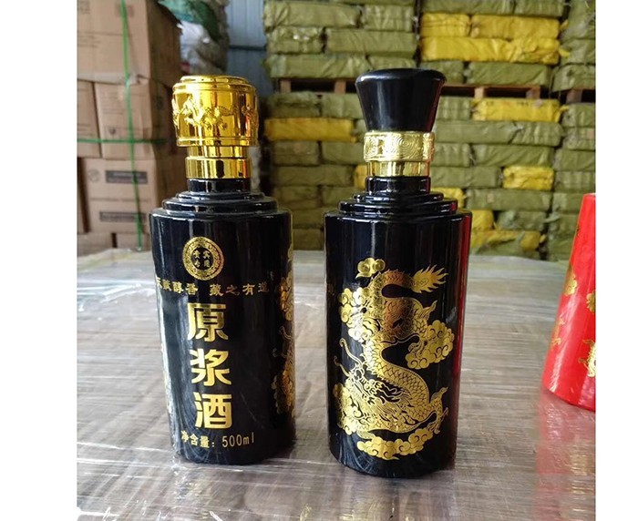 蒙砂酒瓶是在制品玻璃上,粘附一定大小面積的玻璃色釉粉,玻璃瓶廠(chǎng)經(jīng)過(guò)580~600℃的高溫烘烤,使玻璃色釉涂層凝結(jié)在玻璃外表,并顯現(xiàn)出具有與玻璃主體不同顏色的一種裝飾辦法。粘附玻璃色釉粉,可用排筆涂刷,亦可用膠輥滾涂。經(jīng)過(guò)絲印加工,能夠得到蒙砂面的樓空?qǐng)D案。 其辦法是:在玻璃制品外表上,絲印一層由阻熔劑構(gòu)成的圖案紋樣。